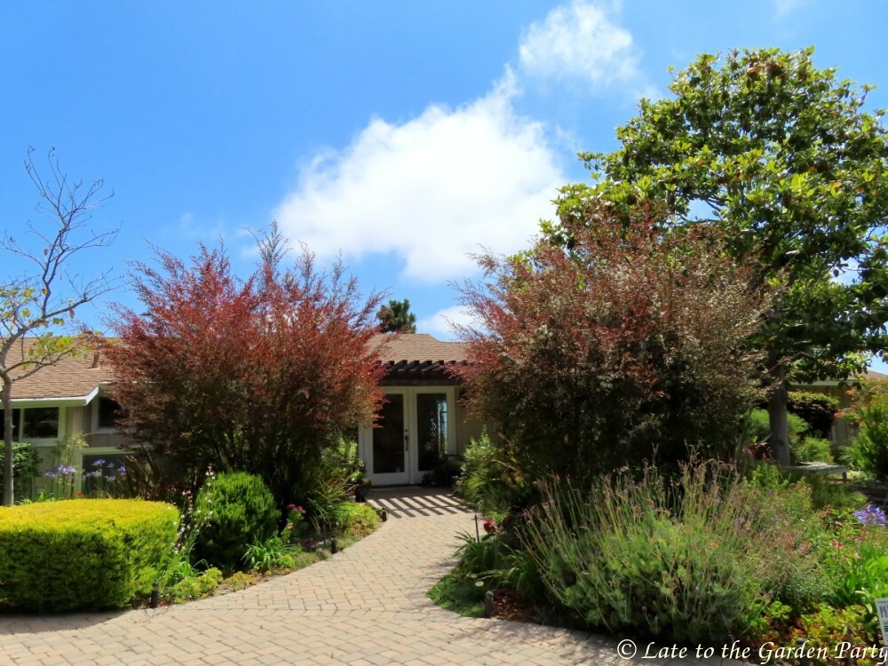 Returning up the path we used to reach the lath house, brings us back to the main level of the front garden.